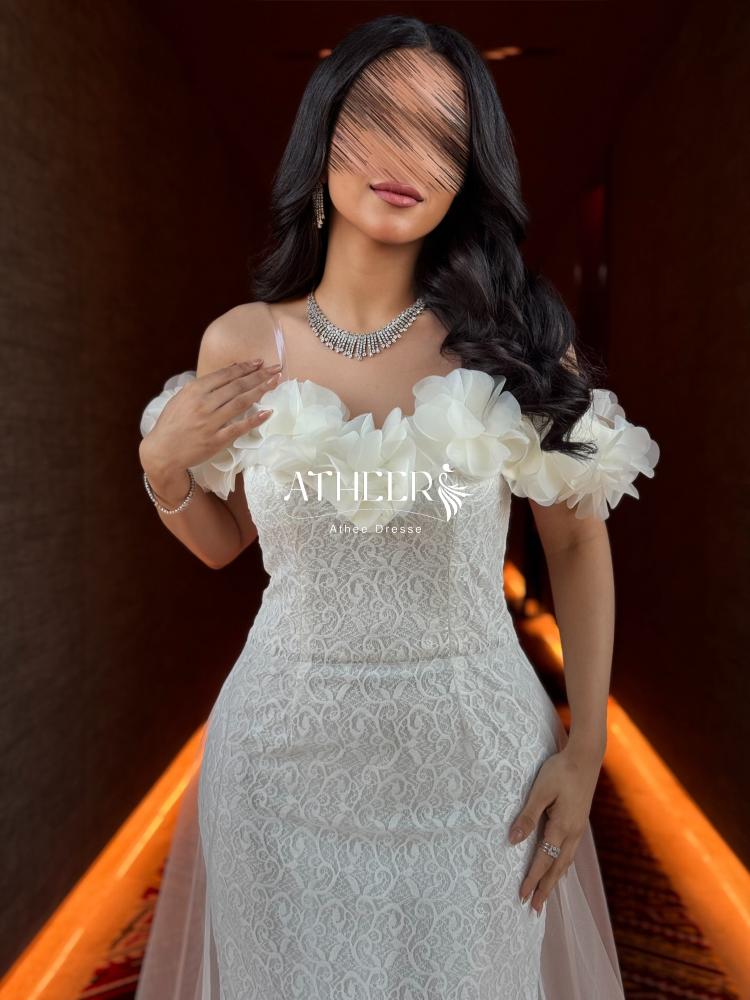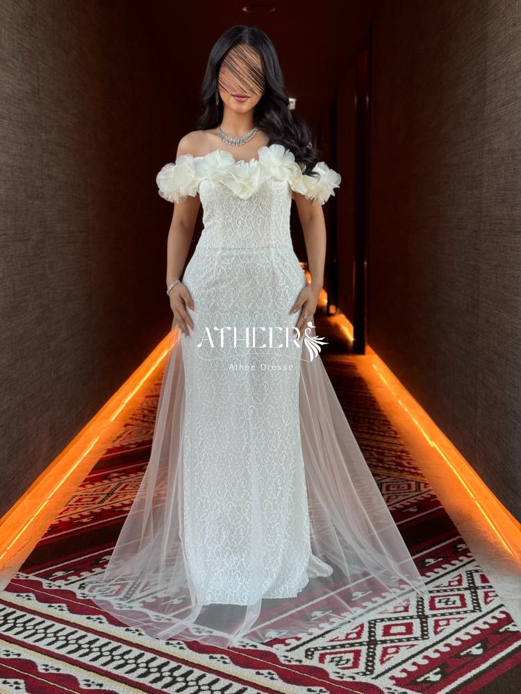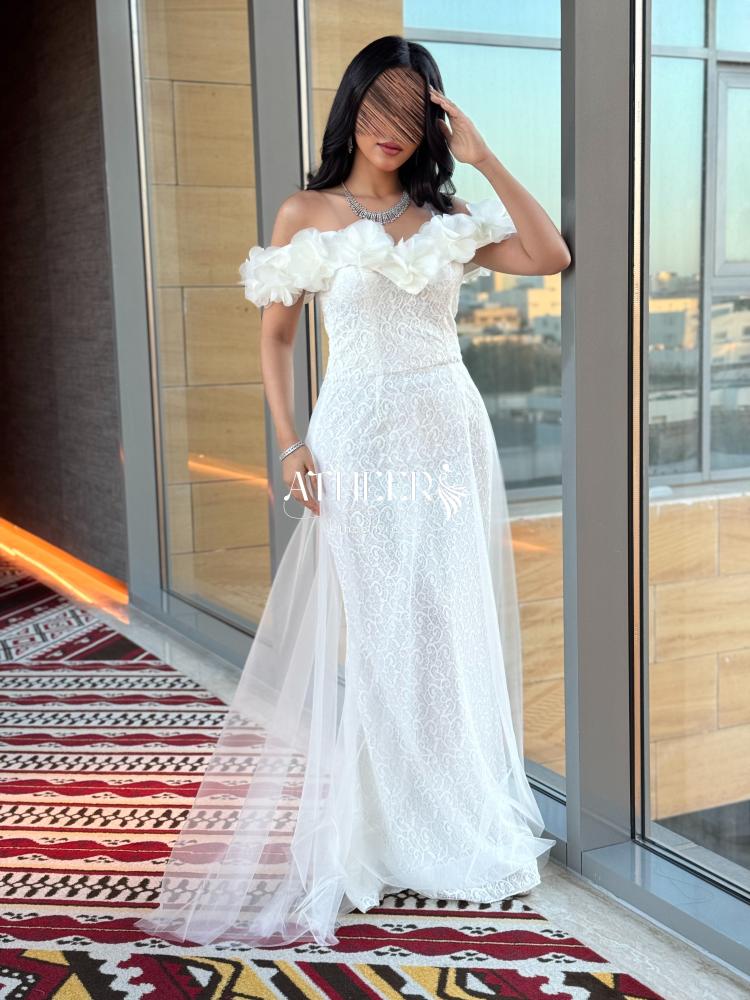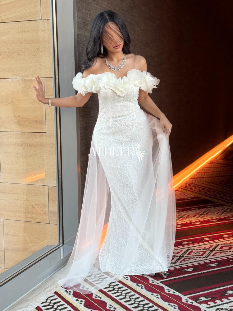 فستان سهره طويل ابيض اوف شولدر | فستان عُلا