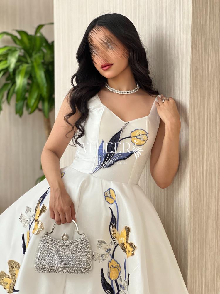 فستان ابيض قصير المطرز هو الخيار المثالي للمناسبات الخاصة من متجر فساتين أثير أفضل متجر فساتين سعودي يتميز بتصميمه الأنيق والكلاسيكي مع تفاصيل رائعة تمنحه لمسة من الفخامة، ليجعل كل لحظة استثنائية.