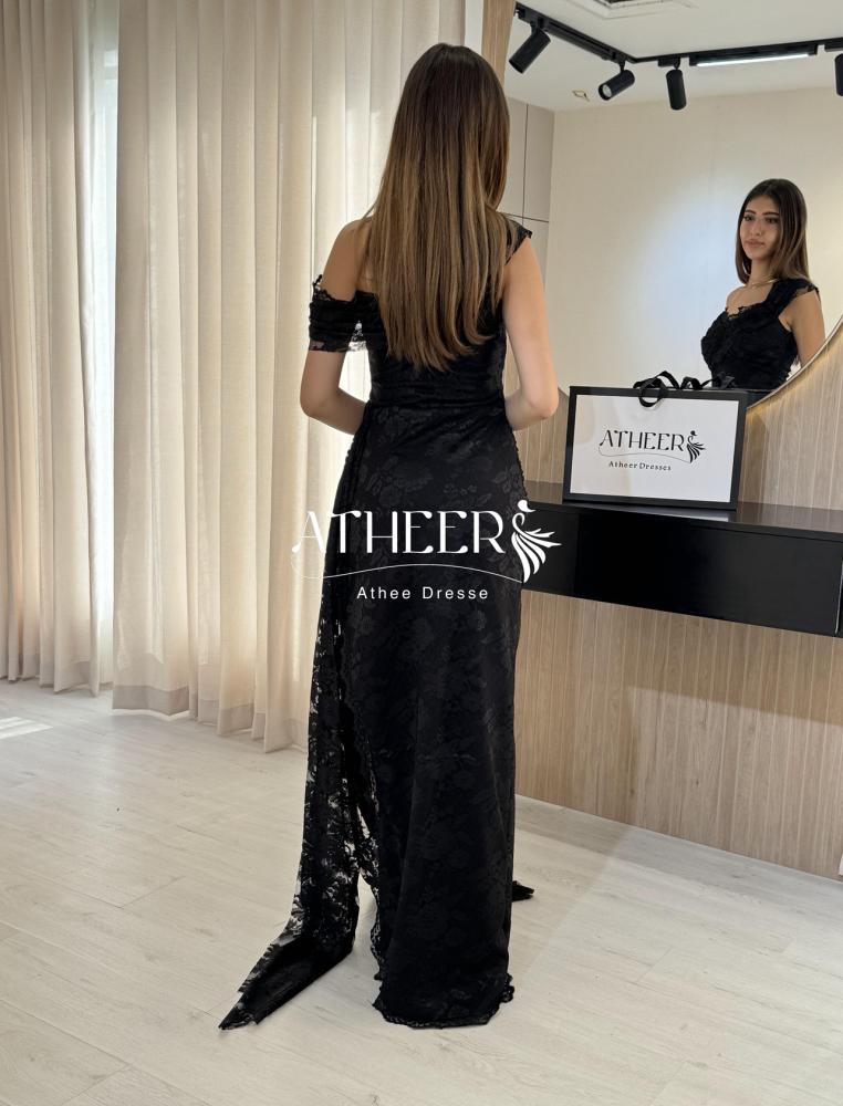 فستان اسود دانتيل طويل اوف شولدر | فستان داليار