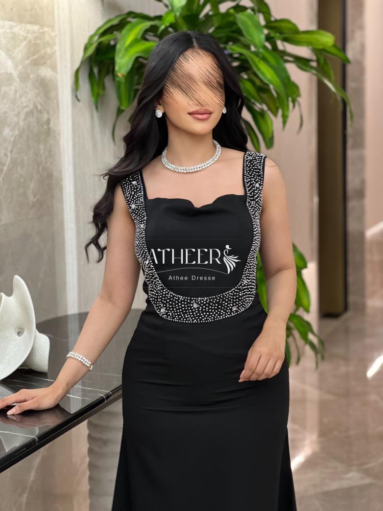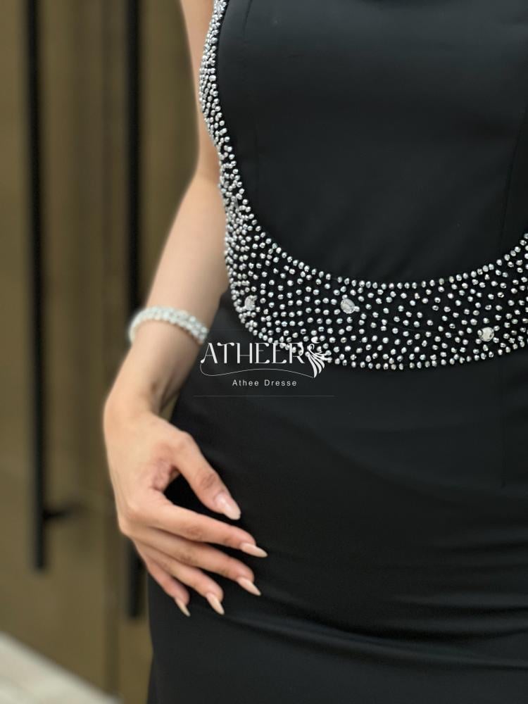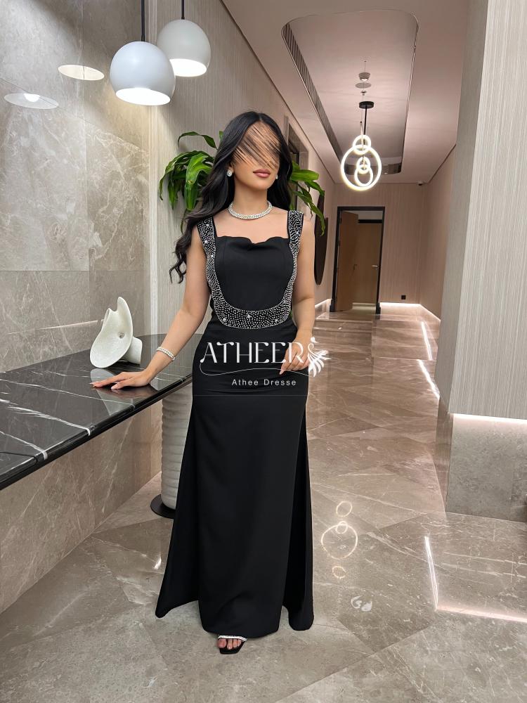 فستان اسود طويل صك كت مطرز فضي | فستان عداله