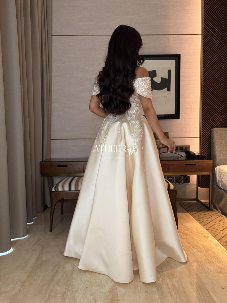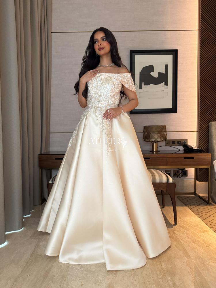 تألقي بإطلالة فريدة مع فستان بقصة كلوش من متجر فساتين أثير أفضل متجر فساتين سعودي، بتصميم راقٍ من قماش الميكادو الفاخر وتفاصيل كلفة السهرة الأنيقة، مثالي للمناسبات الخاصة والسهرات الفخمة.