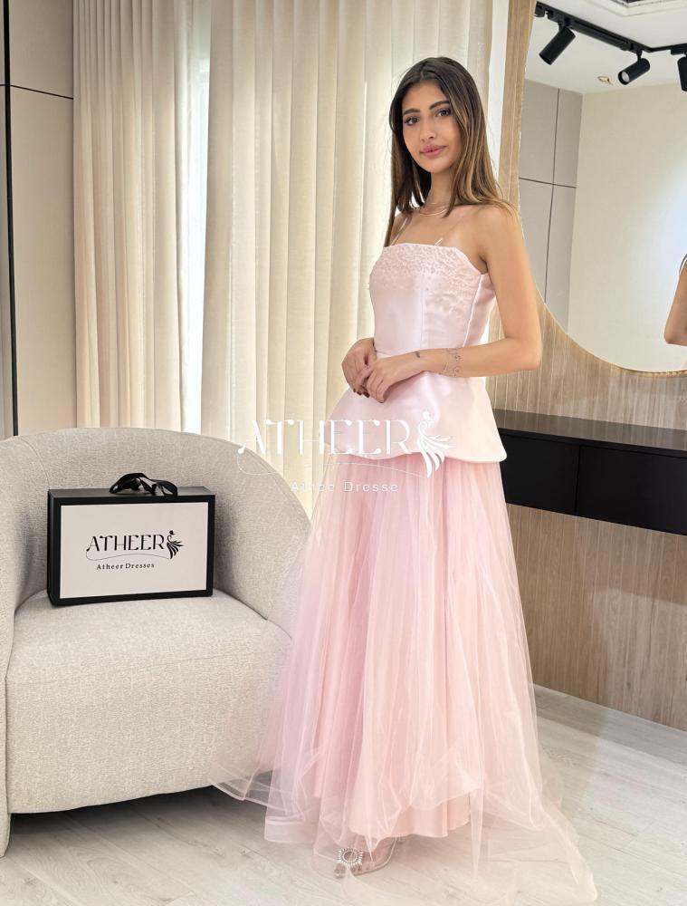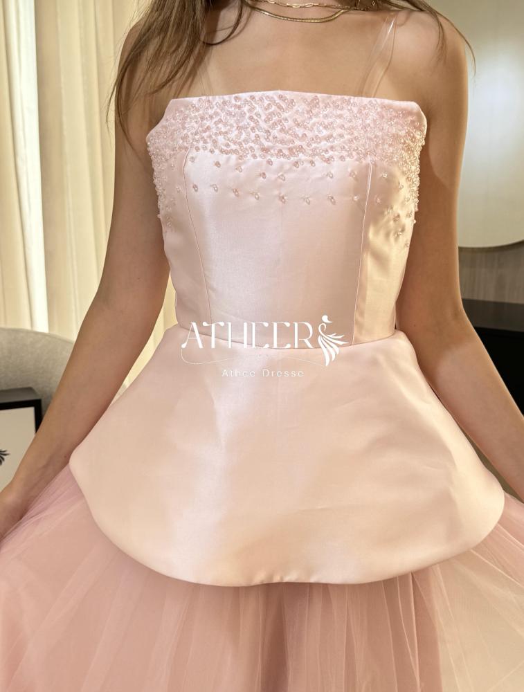 فستان بيبي روز من متجر فساتين أثير أفضل متجر فساتين سعودي مصمم من ميكادو مع تطريز تول يضفي عليكِ إطلالة فاخرة ومميزة في جميع المناسبات الخاصة.