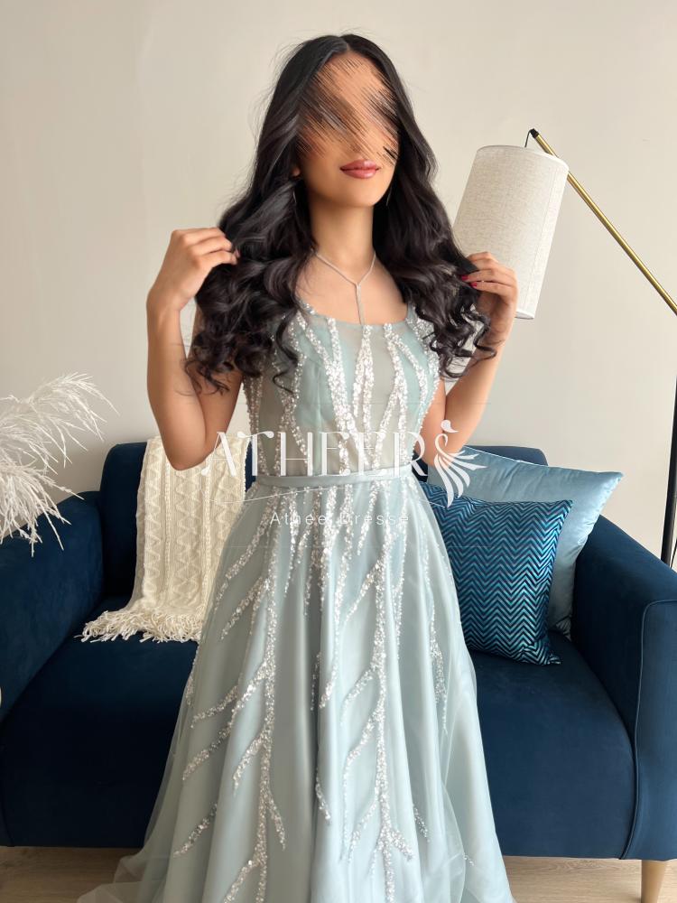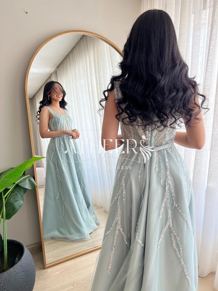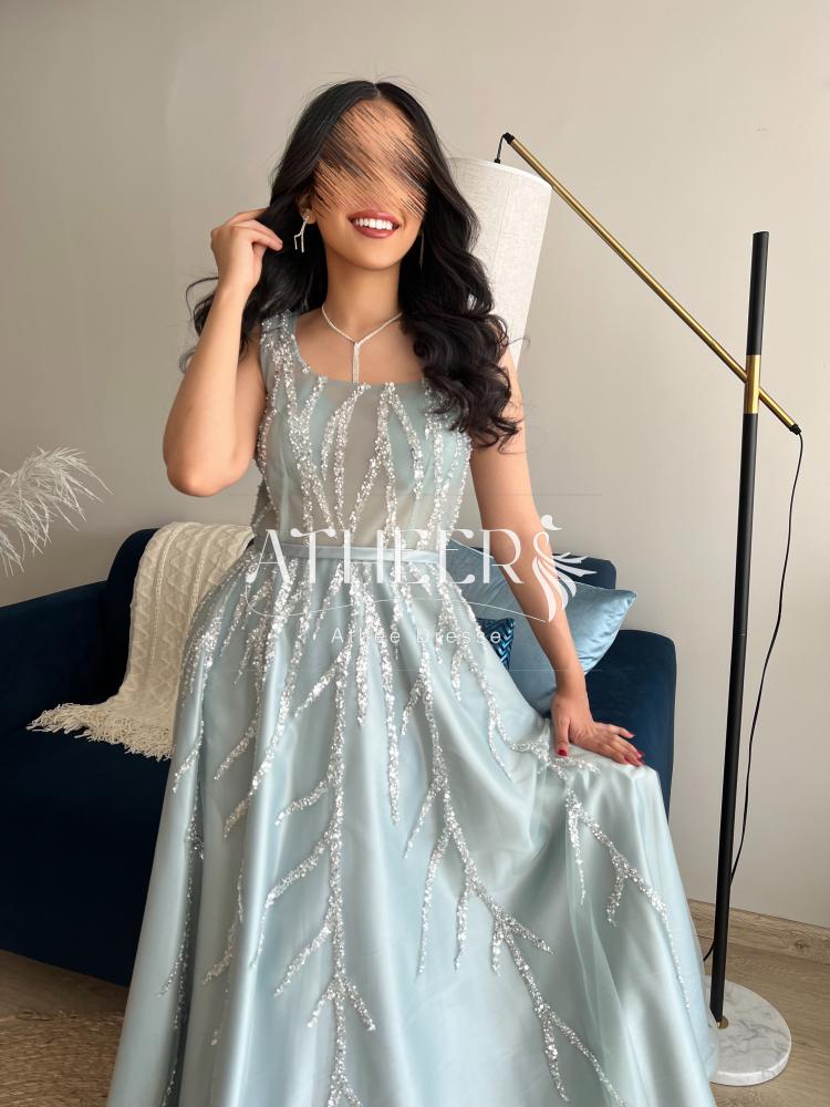 فستان تيفاني بتصميم فاخر بألوان تيفاني الرائعة من متجر فساتين أثير أفضل متجر فساتين سعودي، يتميز بتفاصيل مميزة وقماش تول خفيف يجعله الخيار المثالي لأرقى المناسبات. يناسب هذا الفستان البنات والنساء الباحثات عن إطلالة أنيقة وفريدة من نوعها. اختر مقاسك الآن وتمتع بإطلالة ساحرة!