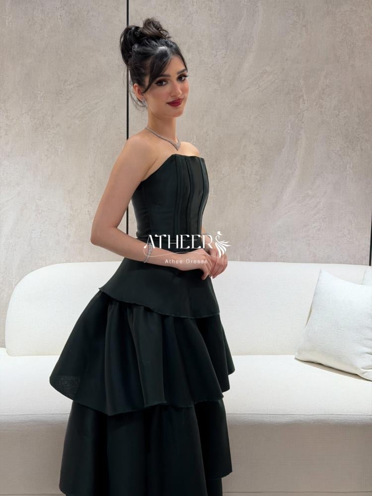 فستان سهرة أسود طويل بدون حمالات | فستان مِيرا