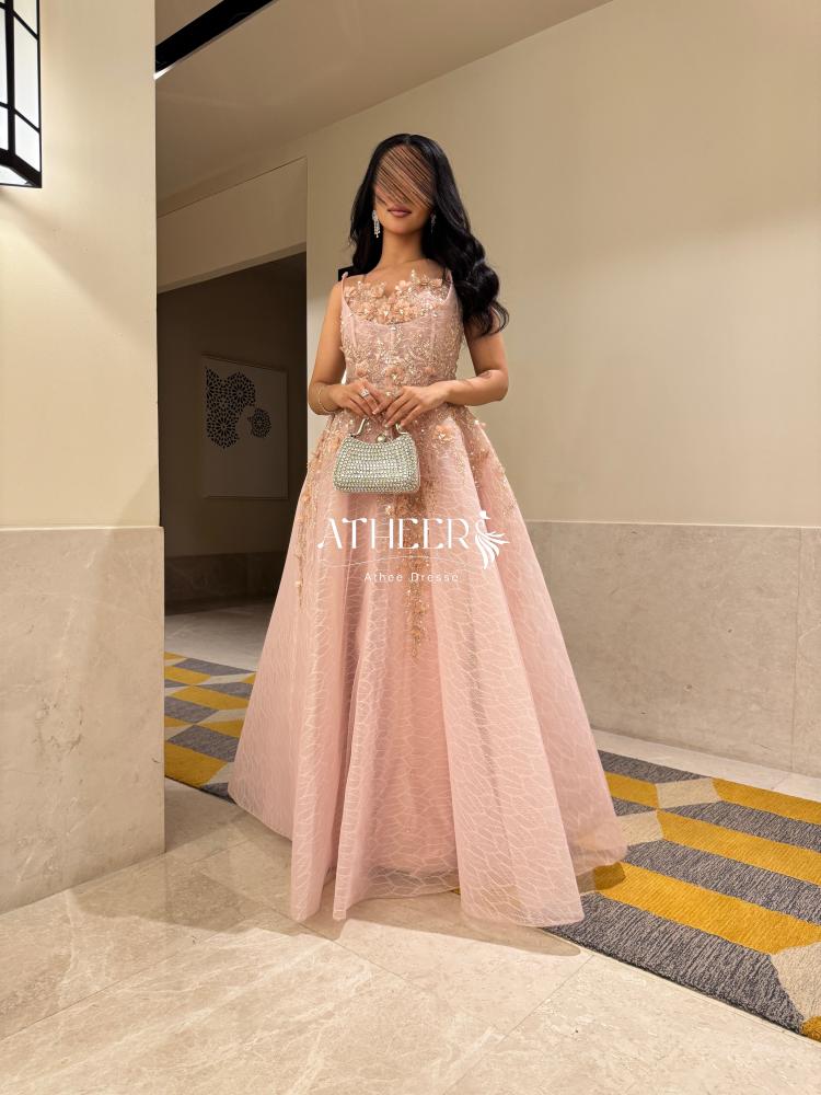 فستان سهره كلوش تول لون لحمي | فستان اركيد
