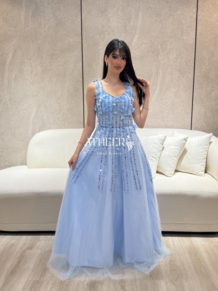 - اللون السماوي يمنح إطلالة هادئة وجذابة تناسب المناسبات الفاخرة.