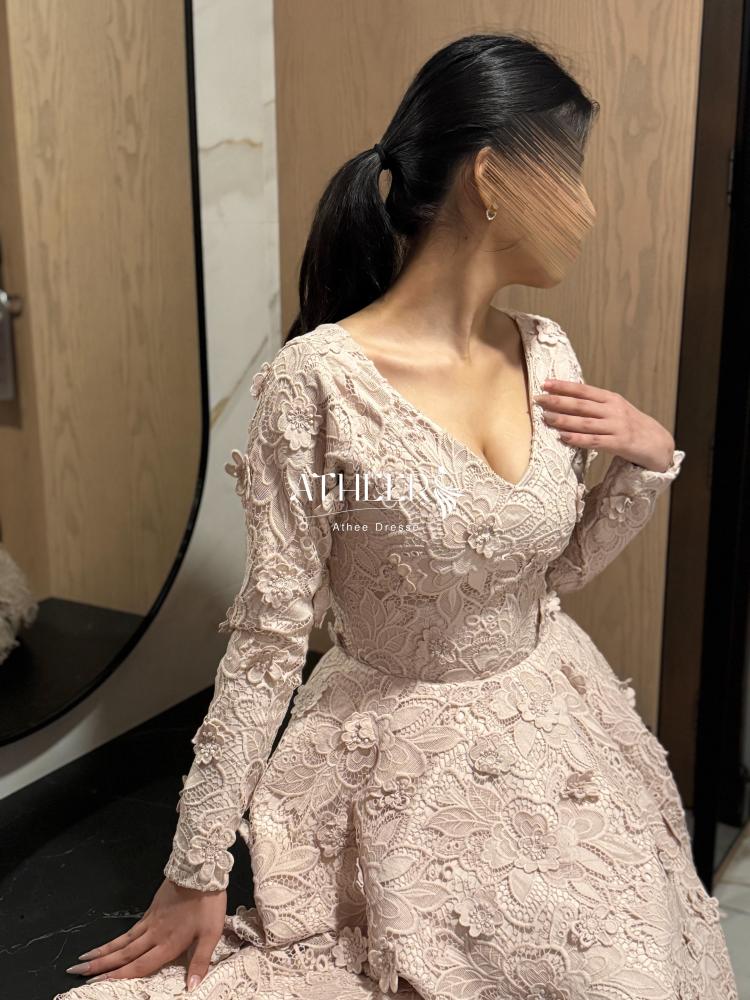 فستان سواريه بيج وردي (نود دانتيل) بتصميم عصري وجذاب من متجر فساتين أثير أفضل متجر فساتين سعودي، مثالي للسهرات والمناسبات الخاصة. يتميز بتفاصيل الدانتيل المطرز بنقشة ورود، مما يضفي عليه لمسة من الفخامة والجمال.