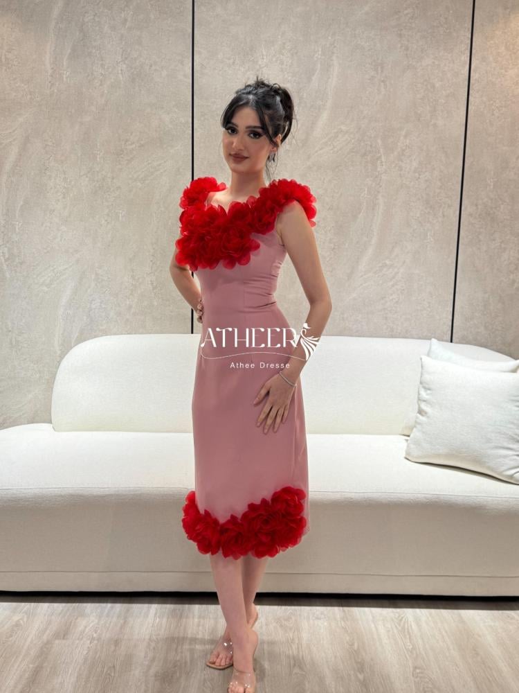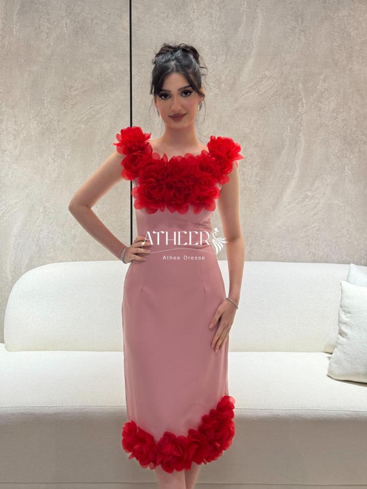 تميّزي بإطلالة جريئة وأنثوية مع فستان قصير وردي مزخرف بالزهور الحمراء من متجر فساتين أثير أفضل متجر فساتين سعودي. فستان كوكتيل فريد من نوعه، يجمع بين الجرأة والرقي بقصة ضيقة تبرز جمال القوام، وتفاصيل زهرية بارزة تضيف لمسة فنية رومانسية تلفت الأنظار في كل مناسبة.